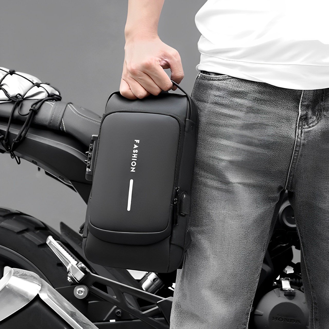 الشنطة ديه أنسي أنها تتسرق ! عشان لو أتسرقت الحرامي مش هيعرف يفتحها عشان بتقدر تحطلها باسورد علي السوستة مش بس كدا الشنطة خامتها مقاومة للمياه + انها بيجي فيها مخرج USB للباور بانك كل ده ومستني أيه أطلبه حالاً .